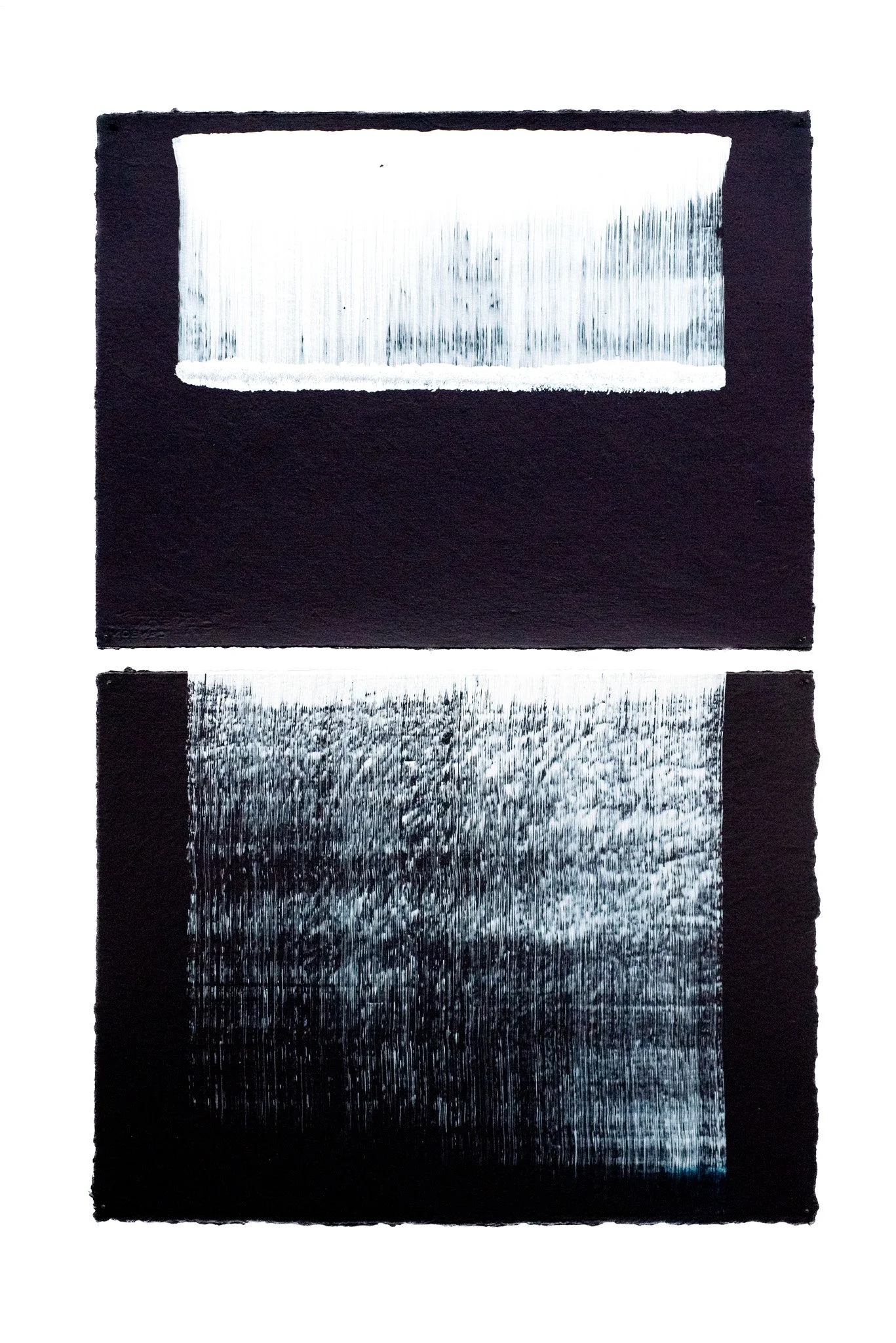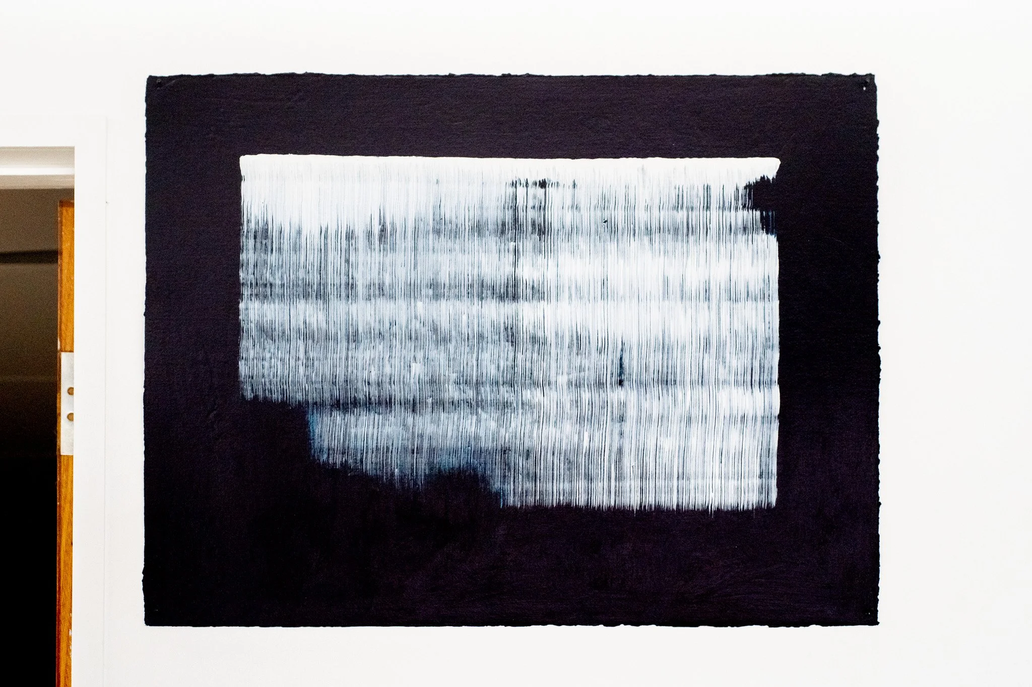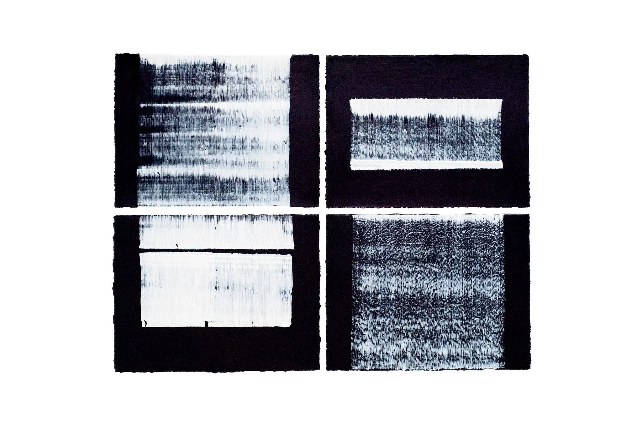 The result is a series of 24 brushmarks made by Peter and filmed by Felix. Peter’s brushmarks reflect 24 versions of a repeated action, with each result changed by slight differences in pressure and position.