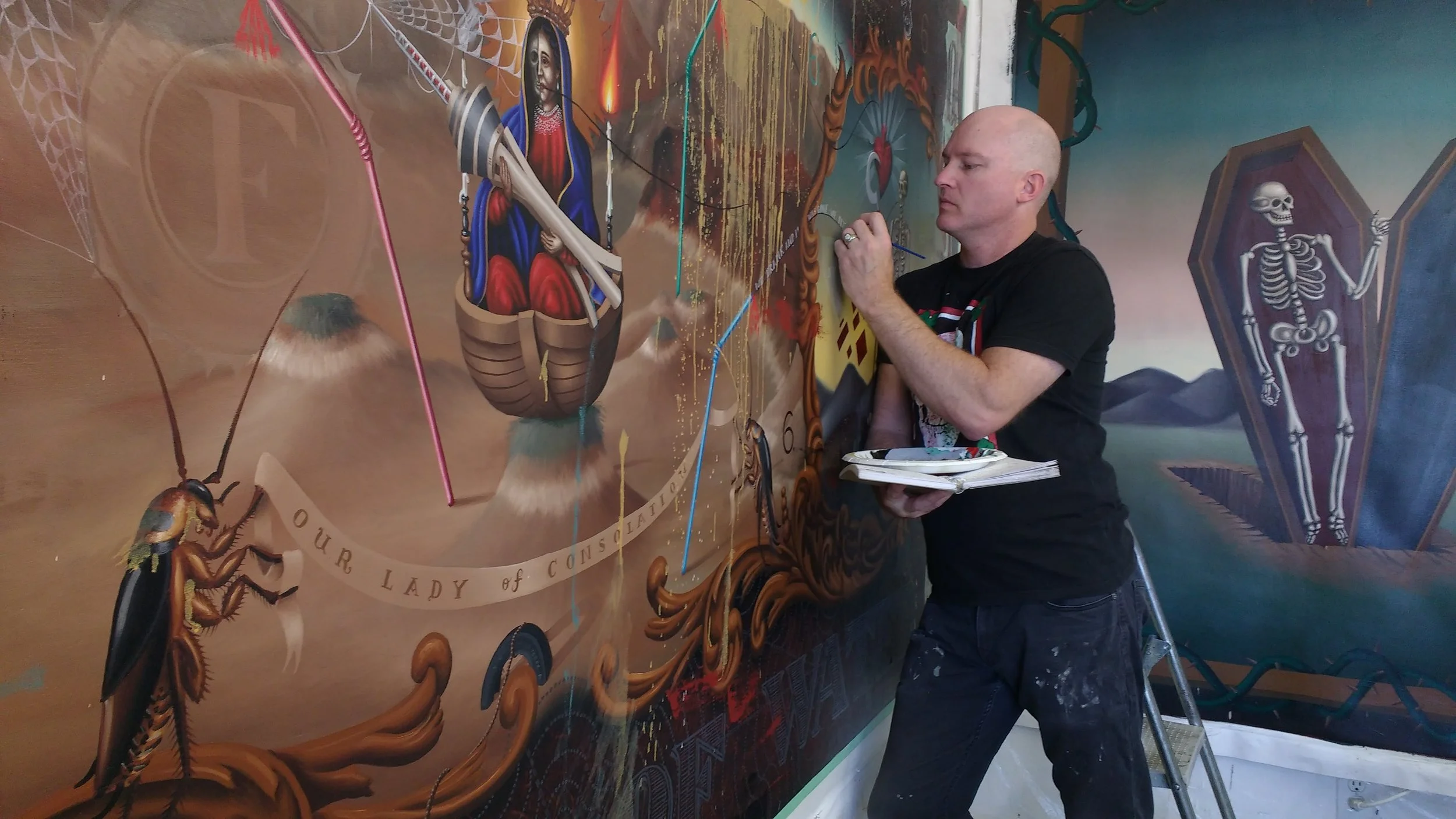 The artist Matthew Couper painting ‘In Memory of Water’ in his old studio 811 S. 3rd Street Unit 6, Las Vegas, NV 89101, USA. Photograph courtesy of the © artist.
