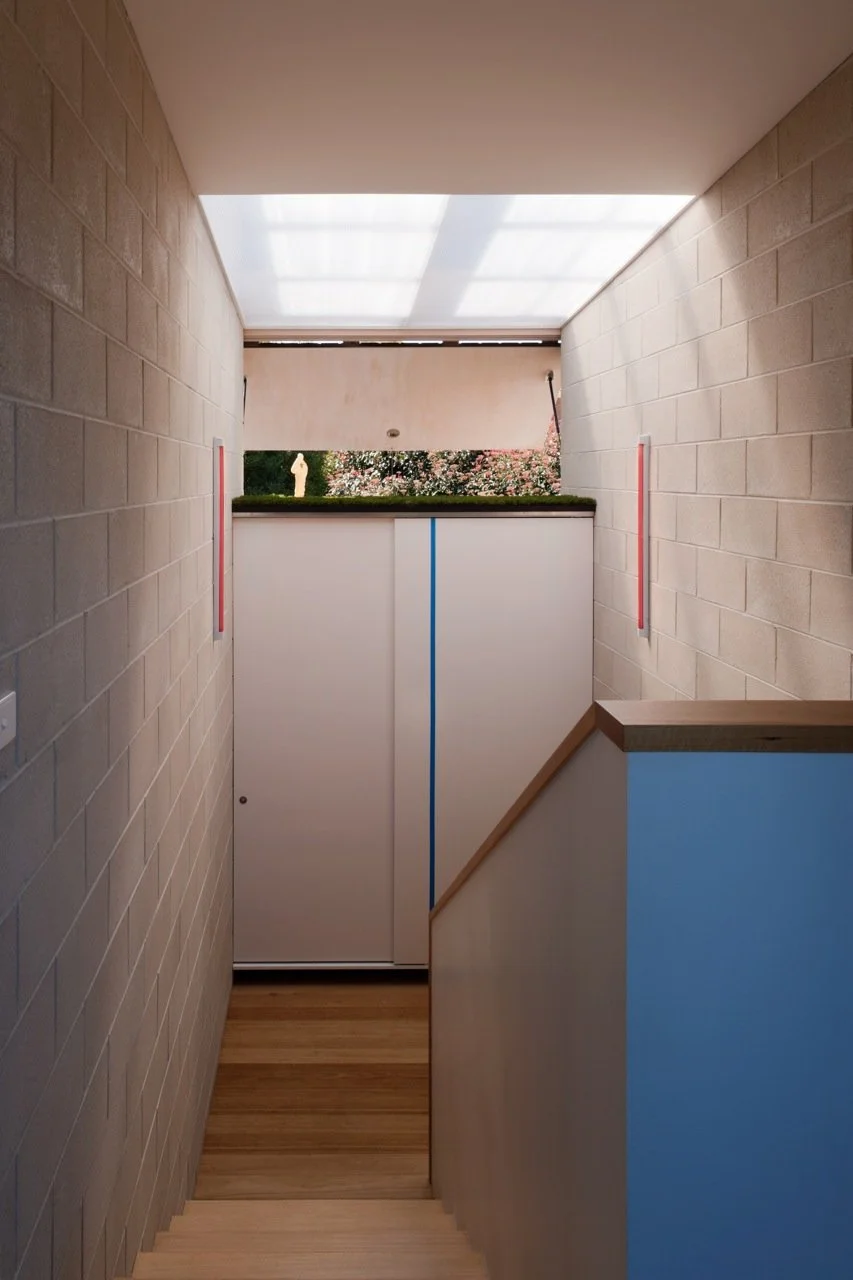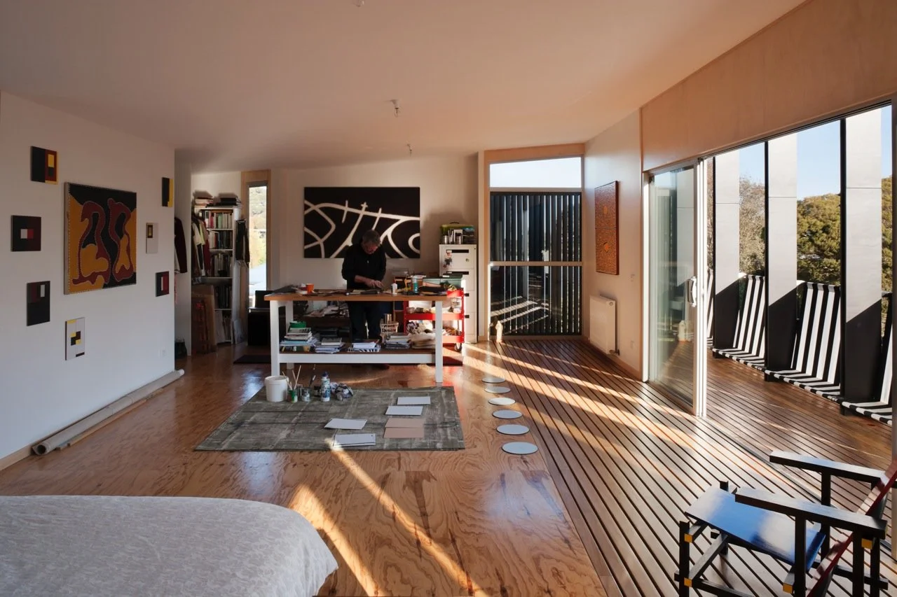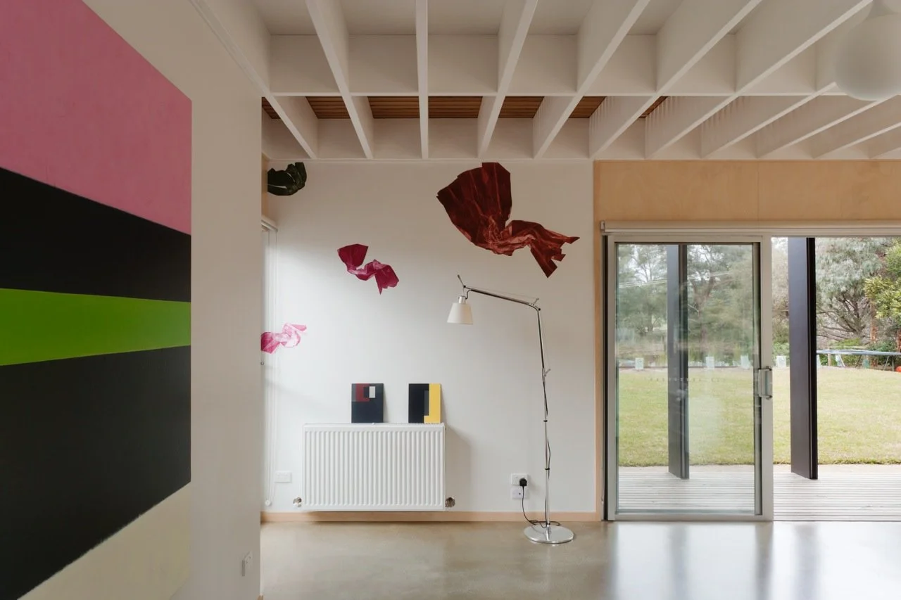“This house is the result of a dialogue between painting and architecture,” says artist and client Peter Adsett. He insists that the process was not a collaboration between an artist and an architect. A collaboration implies a coherent, cohesive whole. A dialogue, on the other hand, is a back-and-forth between two independent entities, without the need for compromise – an argument, perhaps, between strongly held points of view. Peter is an artist and academic. Sam Kebbell of KebbellDaish is an architect and academic. Their dialogue was literally a series of discussions on Skype (because the house is in Shoreham, Australia, and Sam lives in Wellington, New Zealand). They would swap essays and ideas on both painting and architecture. In the end, they found common ground on which to play with ideas of painting and architecture at the same time, centring on the notion of figure and ground. Photography by Sonia Mangiapane.