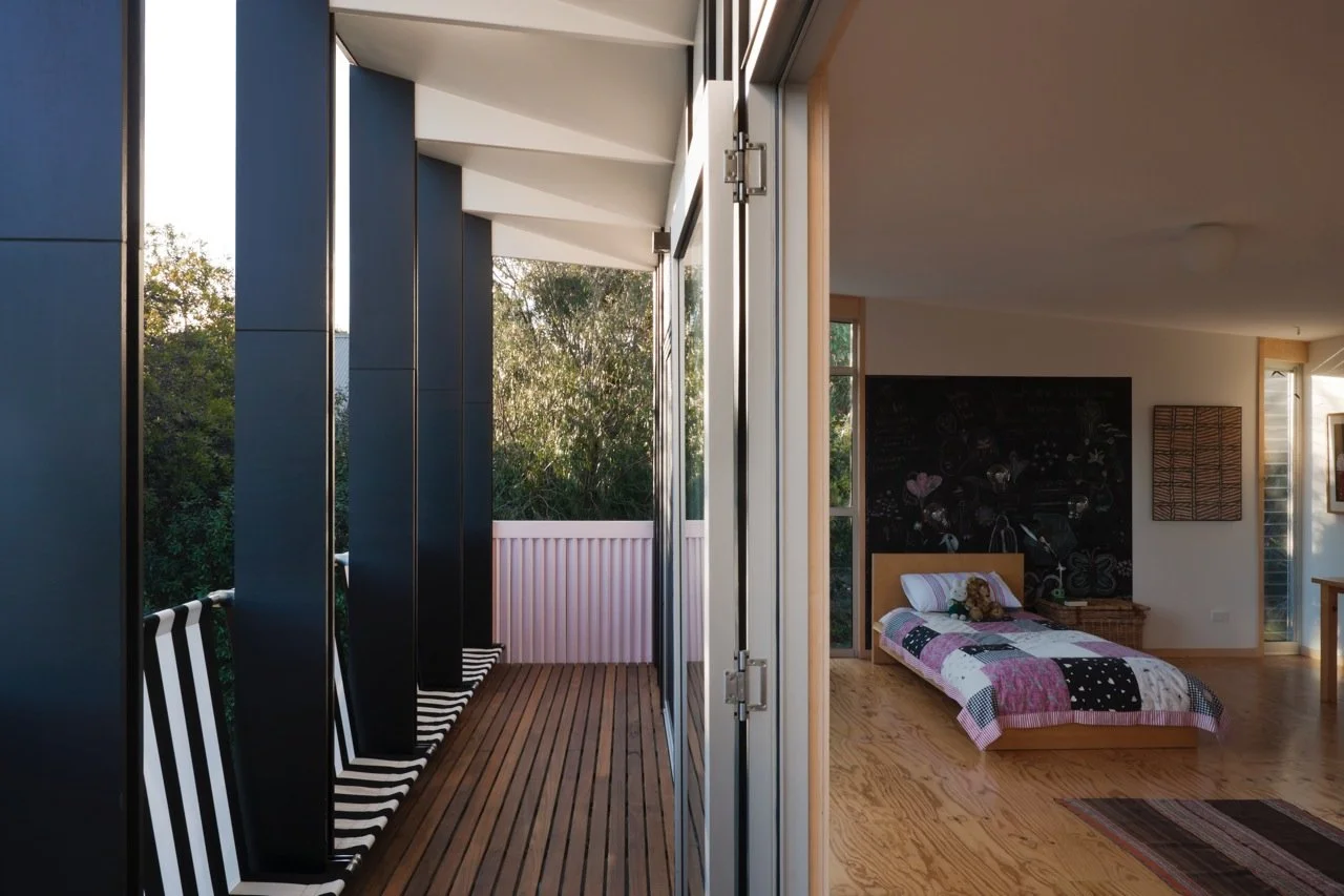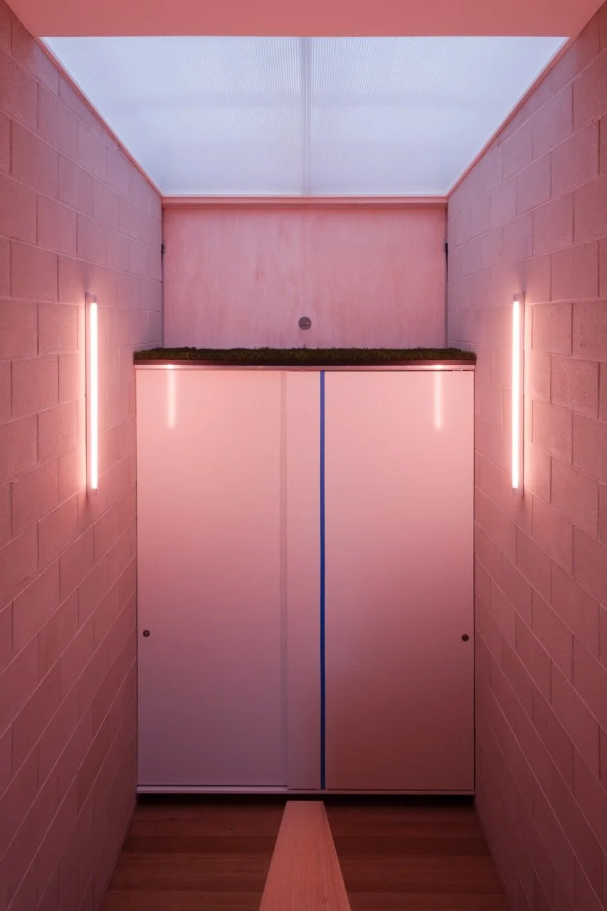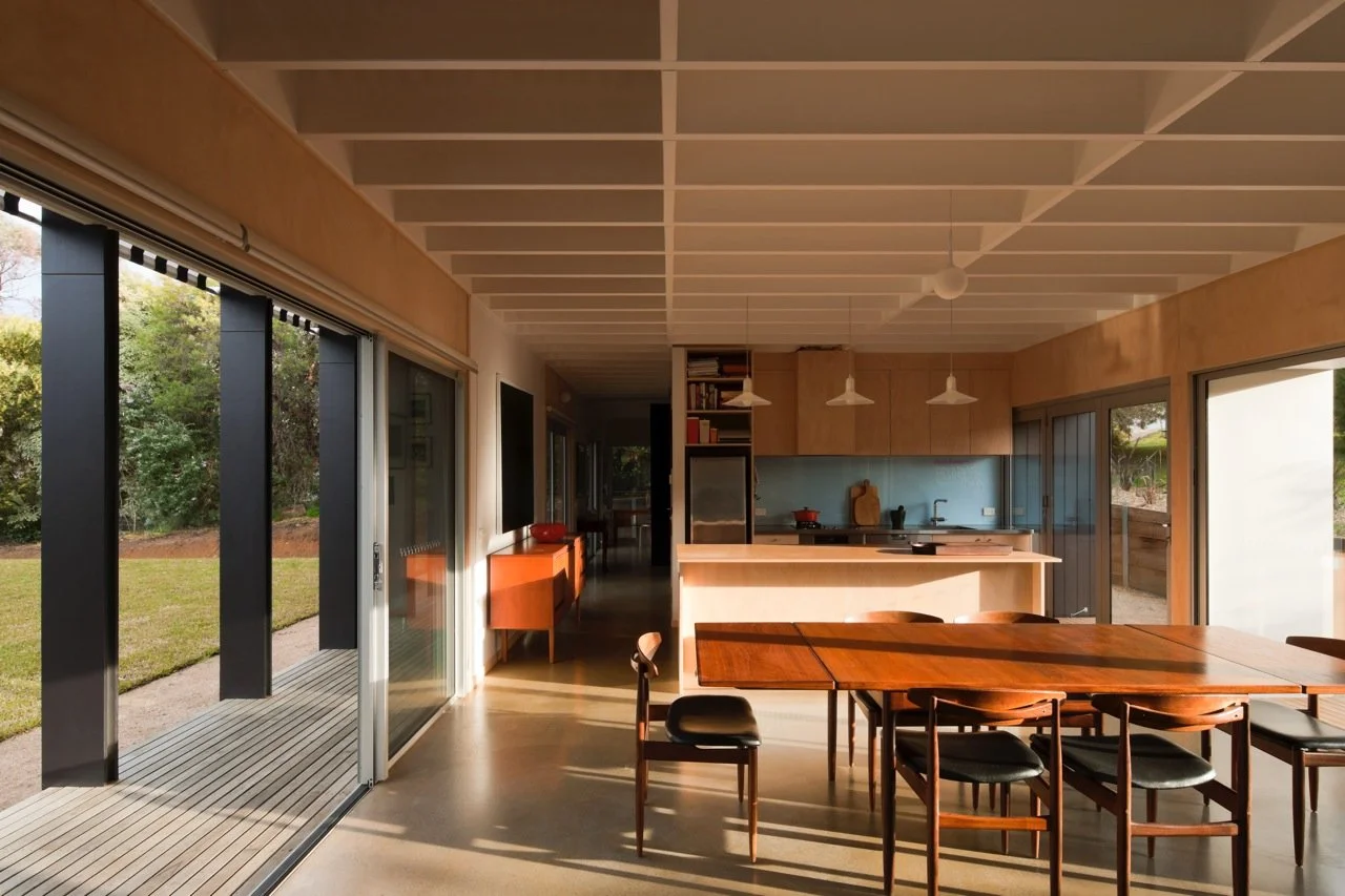 “This house is the result of a dialogue between painting and architecture,” says artist and client Peter Adsett. He insists that the process was not a collaboration between an artist and an architect. A collaboration implies a coherent, cohesive whole. A dialogue, on the other hand, is a back-and-forth between two independent entities, without the need for compromise – an argument, perhaps, between strongly held points of view. Peter is an artist and academic. Sam Kebbell of KebbellDaish is an architect and academic. Their dialogue was literally a series of discussions on Skype (because the house is in Shoreham, Australia, and Sam lives in Wellington, New Zealand). They would swap essays and ideas on both painting and architecture. In the end, they found common ground on which to play with ideas of painting and architecture at the same time, centring on the notion of figure and ground. Photography by Sonia Mangiapane.