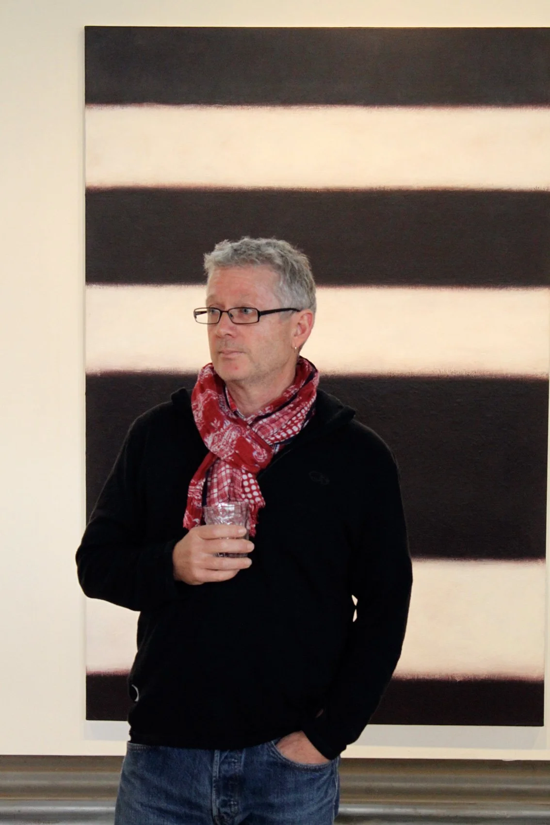 Portrait of the painter during his exhibition ‘Snakes & Ladders’