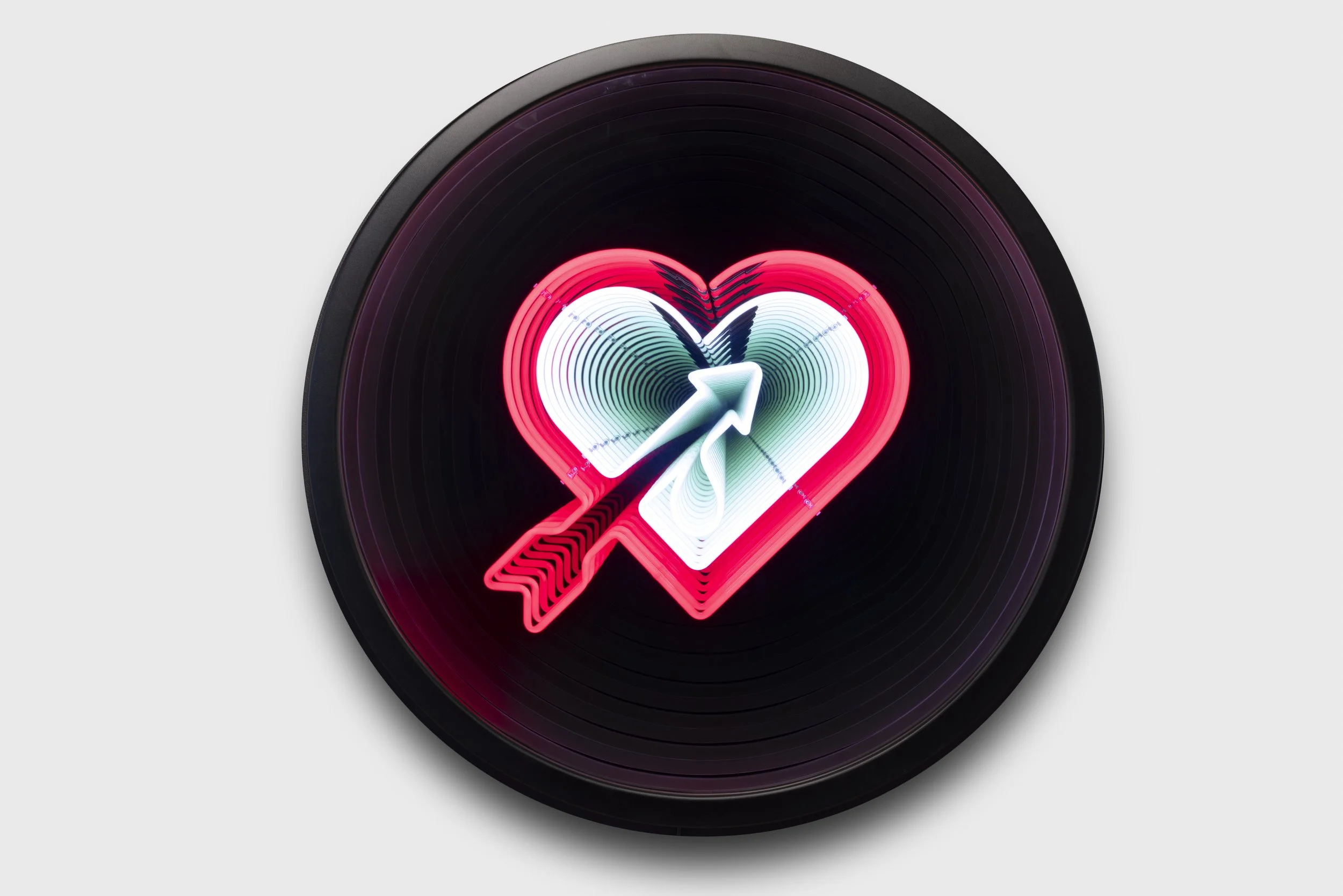 Detailed photograph of Robert Jahnke’s fluorescent light-box sculpture entitled ‘Tanetokorangi’, featured in his ‘Lamentation’ Series and touring exhibition.